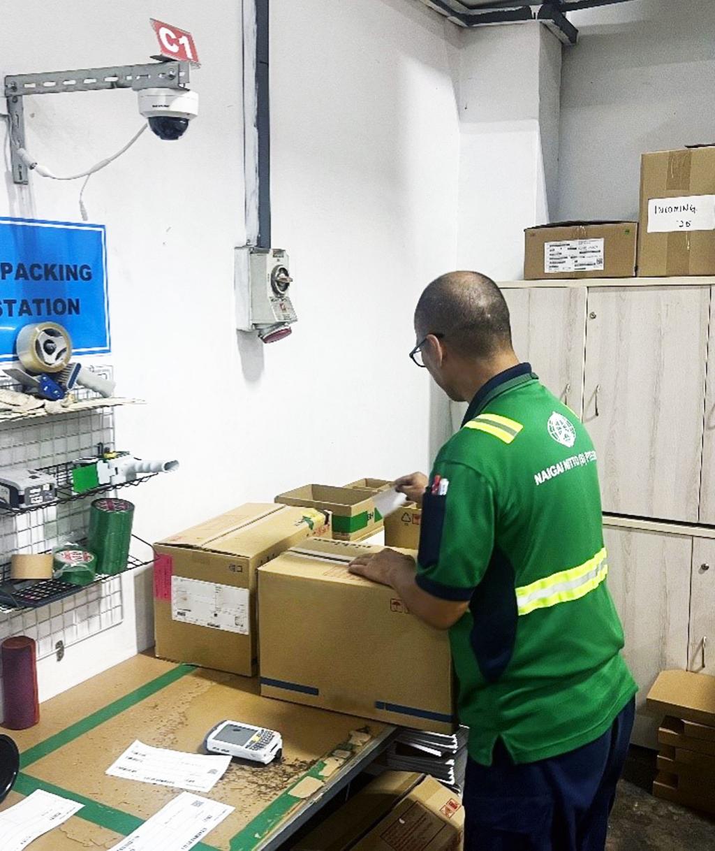 リパック対応・内外日東シンガポール会社ではリパック発生時の事故防止の為、CCTVを3箇所に導入して映像で作業を記録する。