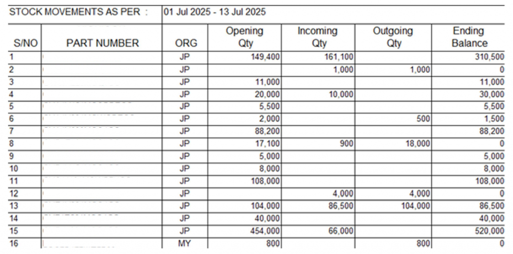 ・どの品番が、いつ、何個出庫されたかを管理可能。