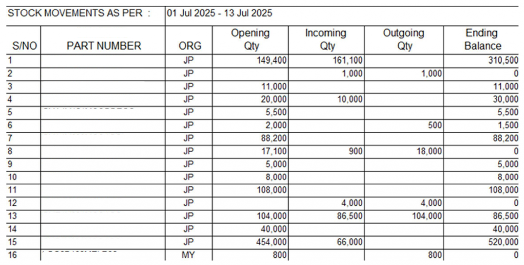 ・どの品番が、いつ、何個出庫されたかを管理可能。