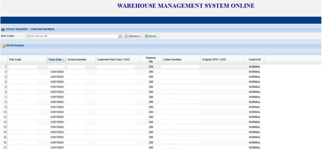 ・お客様毎に発行する「User ID」と「パスワード」でログインしリアルタイムで在庫状況を確認可能。